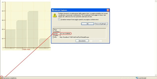 Se visualizzo il tutto con Firefox, nessun problema ma se provo a lanciare la pagina aspx con il browser Internet Explorer 6 SP2(con la versione 7 non ho ancora avuto modo di fare un test a proposito) il grafico viene generato ma compare un errore javascript: