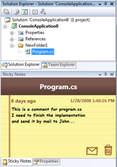 Add-in per Visual Studio 2008 che aggiunge all'ambiente la possibilità di inserire delle note per ciascun file che compone la solution.